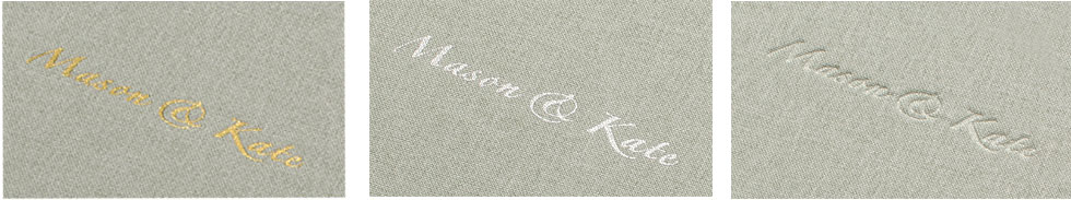 Gold,Silver or Indentation imprinting on a Linen Cover Album£¬up to three lines of imprinting in lower right corner or centre of the album.