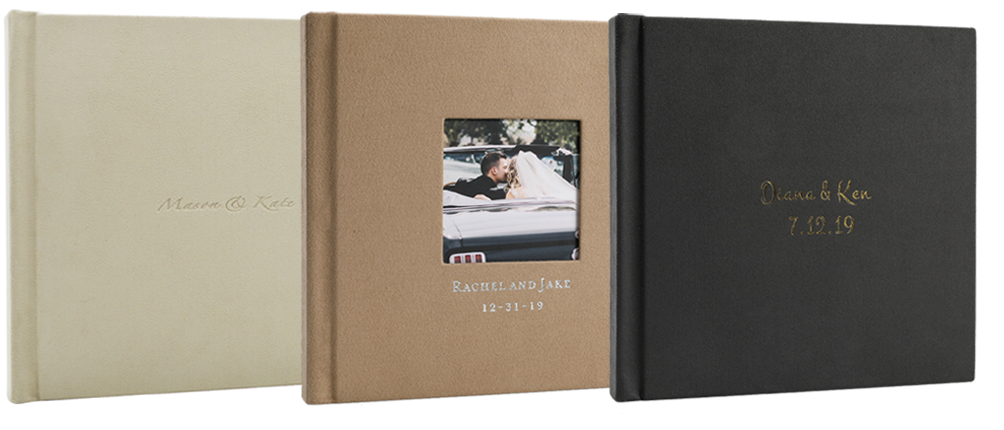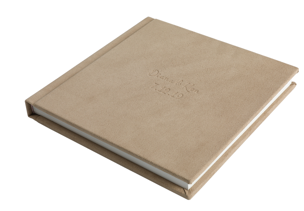 Gold,Silver or Indentation imprinting on a suede Cover Album, up to three lines of imprinting in lower right corner or centre of the album.