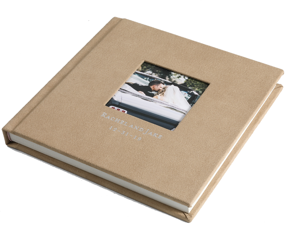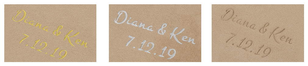 Gold,Silver or Indentation imprinting on a suede Cover Album, up to three lines of imprinting in lower right corner or centre of the album.